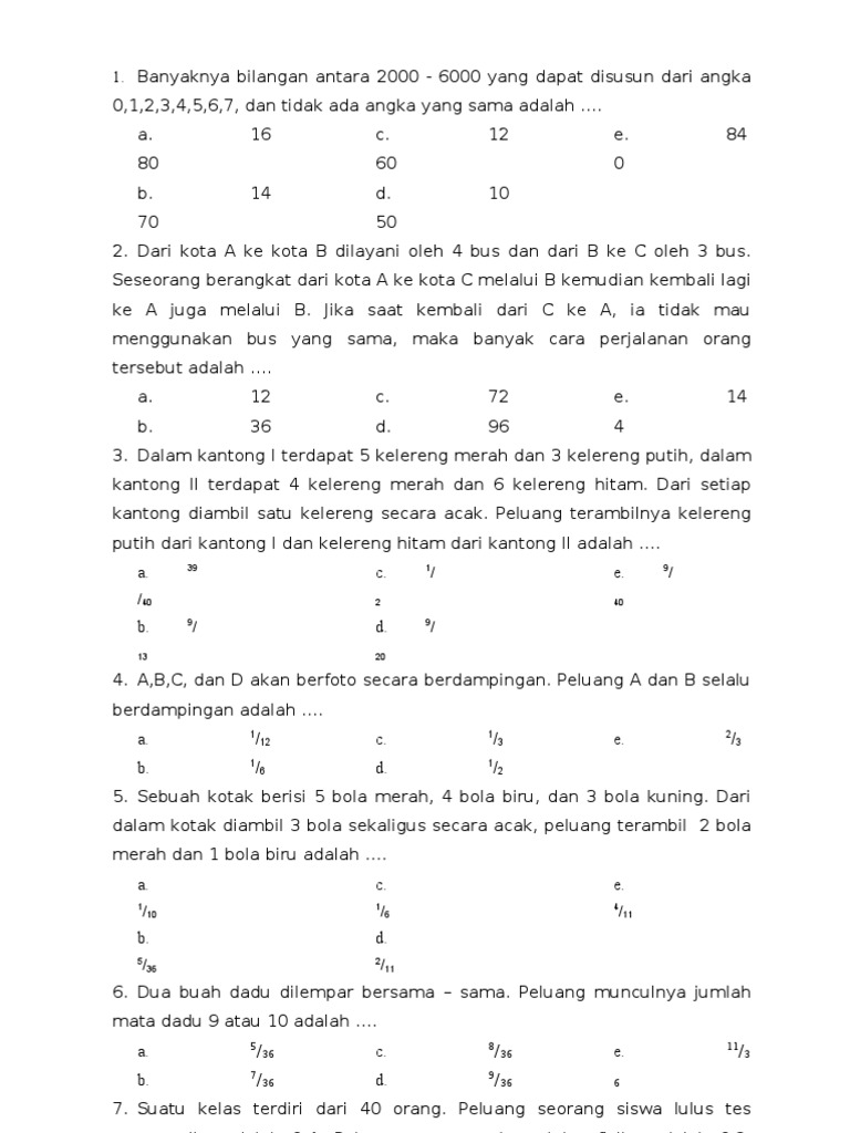 Soal Dan Pembahasan Peluang Safari Matematika from rokhim584.files.wordpress.com Maybe you would like to learn more about one of these? Check spelling or type a new query. We did not find results for: Sebuah kotak berisi 5 bola merah dan 3 bola biru jika diambil 2 bola sekaligus dari kotak itu peluang terambil 2 bola merah adalah.